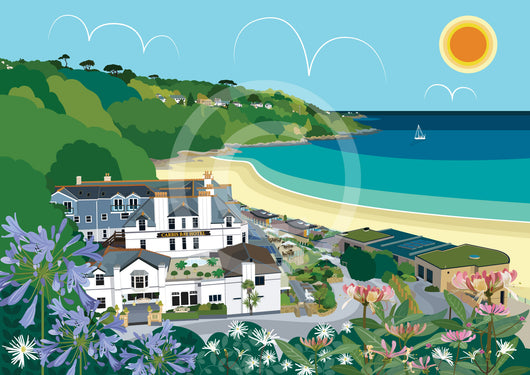 Digitally designed image of Carbis Bay, St Ives, Cornwall, available as:
