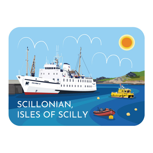 Digitally designed image of The Scillonian 3 docked at St Mary's, Isles of Scilly available as: