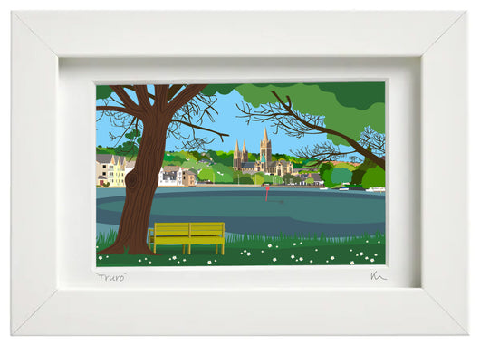 Framed print – white wood frame 17cm x 12cm x 3cm, image size is 11cm x 7cm. Title of design and signature on the mount in pencil *